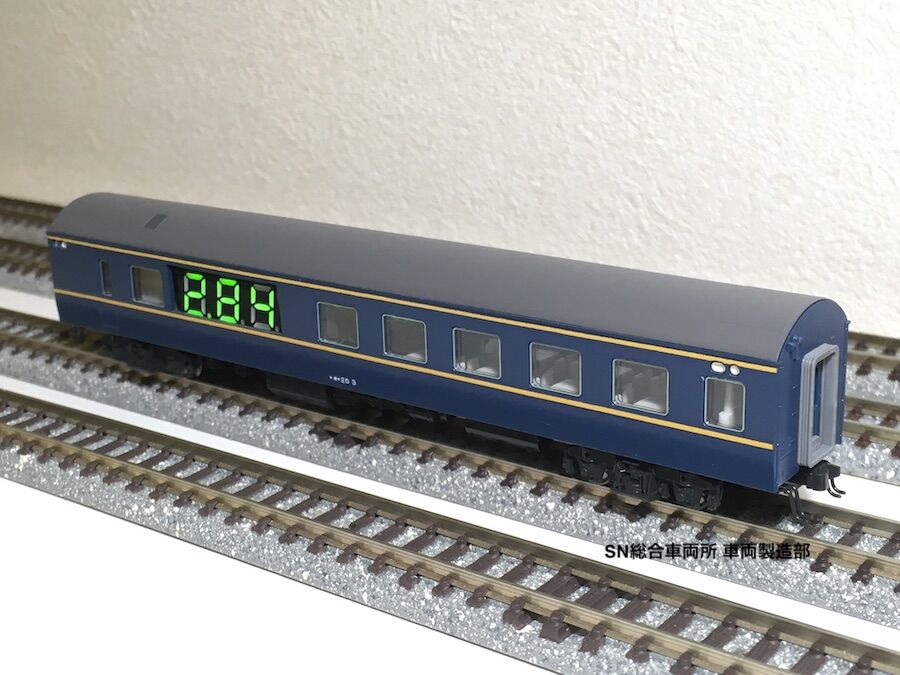 オヤ20系は『SN総合車両所 車両製造部』が製造する「電圧計付き電気観測車」の製品として製作したフリーランス(実在しない)車両です。国鉄鉄道軌道検測車に倣った青と黄の塗装を軽量客車スタイルの車体に施しています。