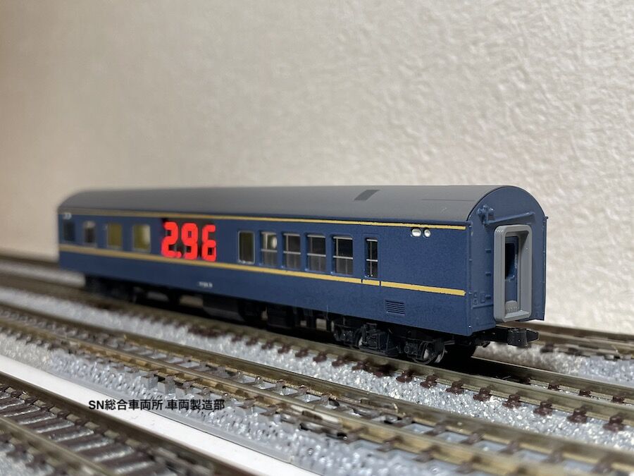 オヤ20系は『SN総合車両所 車両製造部』が製造する「電圧計付き電気検測車」の限定品として4両のみ製作したフリーランス(実在しない)車両です。国鉄鉄道軌道検測車に倣った青と黄の塗装を軽量客車スタイルの車体に施しています。さらに本製品は上から艶消し塗装を施し、車庫の片隅に長期留置されている様子を再現するのに最適な仕様としております。