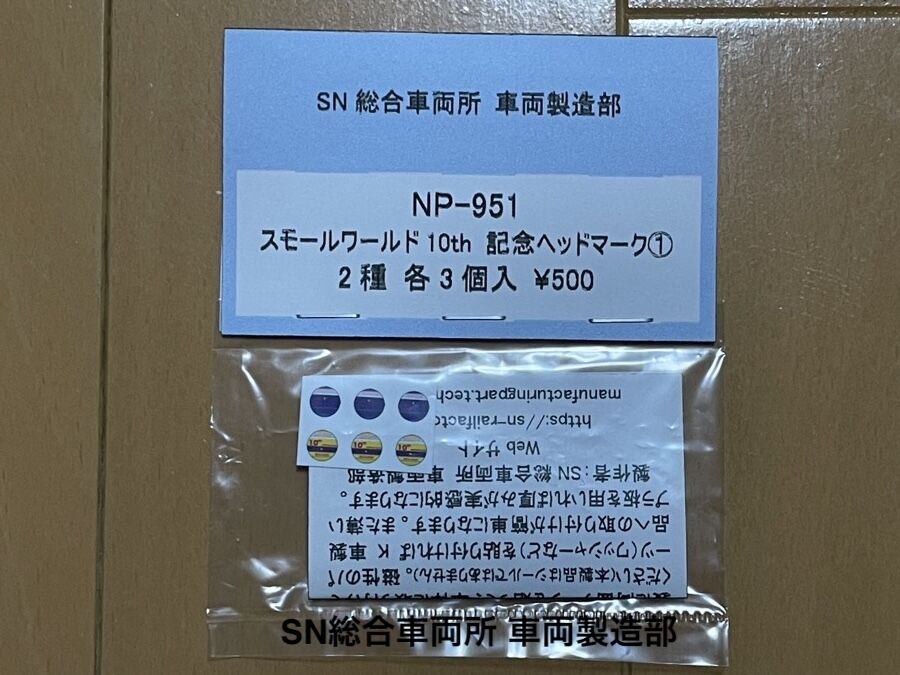 ・NP-951 レンタルレイアウトスモールワールド10th 記念ヘッドマーク① ¥500